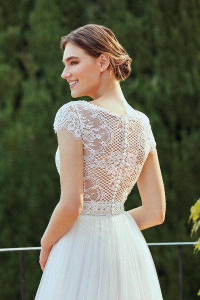 - Verschiedene Ärmelvarianten: Lange Ärmel aus Spitze oder zarte Träger